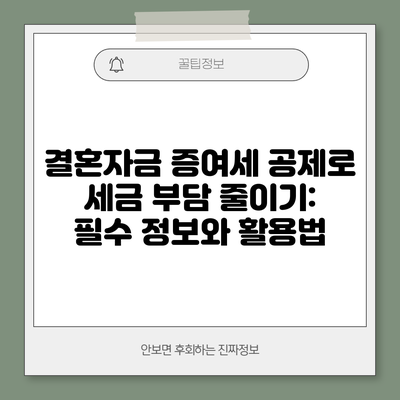 결혼은 인생의 큰 전환점으로, 많은 준비가 필요해요. 특히 결혼자금을 마련하는 것은 예비부부에게 가장 큰 부담 중 하나인데요. 그러나, 결혼자금 증여세 공제를 활용하면 상당한 세금 부담을 덜 수 있다는 사실, 알고 계셨나요? 이 글에서는 결혼자금 증여세 공제에 대해 자세히 살펴보도록 할게요.
