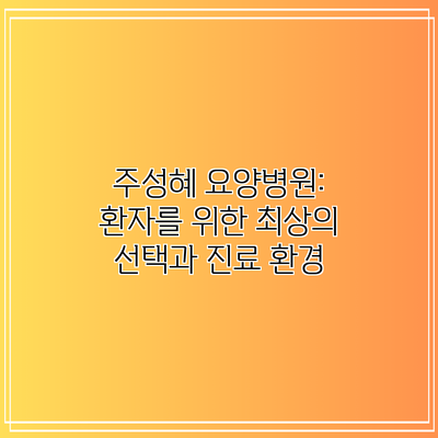 주성혜 요양병원: 환자를 위한 최상의 선택과 진료 환경