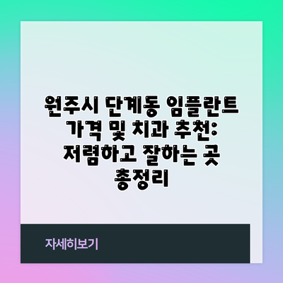 원주시 단계동 임플란트 가격 및 치과 추천: 저렴하고 잘하는 곳 총정리
