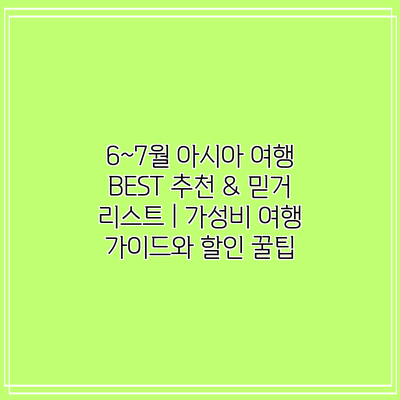 6~7월 아시아 여행 BEST 추천 & 믿거 리스트 | 가성비 여행 가이드와 할인 꿀팁