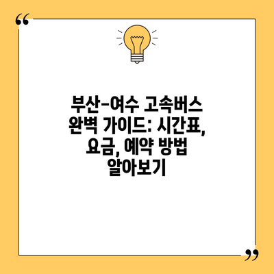 부산-여수 고속버스 완벽 가이드: 시간표, 요금, 예약 방법 알아보기