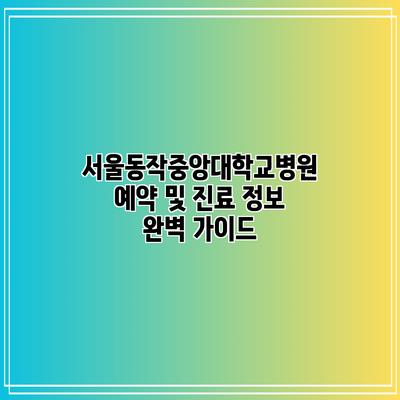 서울동작중앙대학교병원 예약 및 진료 정보 완벽 가이드