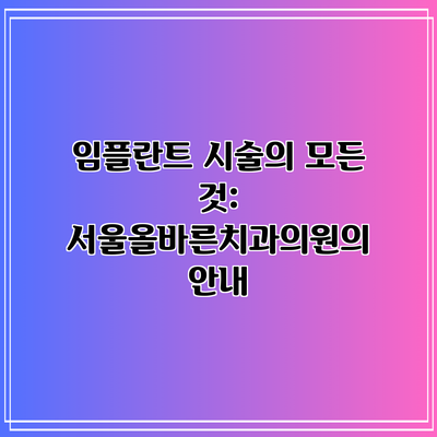 임플란트 시술의 모든 것: 서울올바른치과의원의 안내