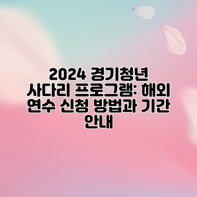 2024 경기청년 사다리 프로그램: 해외 연수 신청 방법과 기간 안내