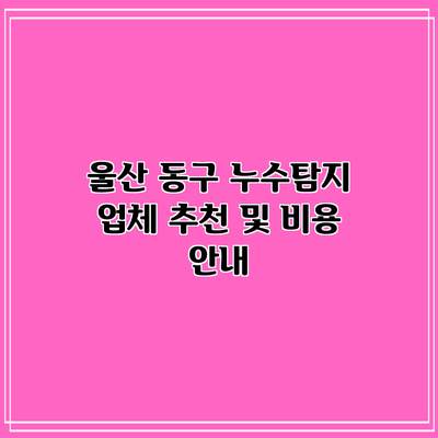 울산 동구 누수탐지 업체 추천 및 비용 안내