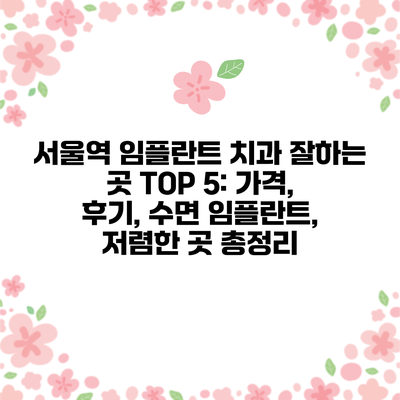 서울역 임플란트 치과 잘하는 곳 TOP 5: 가격, 후기, 수면 임플란트, 저렴한 곳 총정리