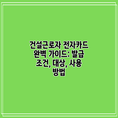 건설근로자 전자카드 완벽 가이드: 발급 조건, 대상, 사용 방법