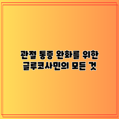 관절 통증 완화를 위한 글루코사민의 모든 것
