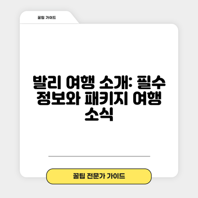 발리 여행 소개: 필수 정보와 패키지 여행 소식