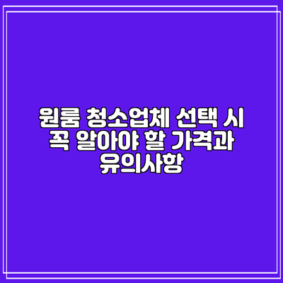 원룸 청소업체 선택 시 꼭 알아야 할 가격과 유의사항