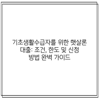 기초생활수급자를 위한 햇살론 대출: 조건, 한도 및 신청 방법 완벽 가이드