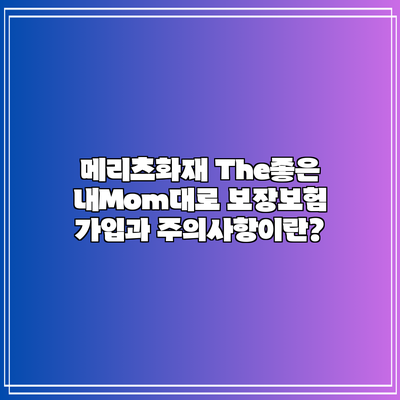 메리츠화재 The좋은 내Mom대로 보장보험 가입과 주의사항이란?