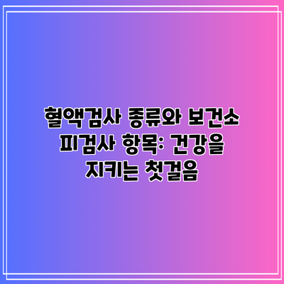 혈액검사 종류와 보건소 피검사 항목: 건강을 지키는 첫걸음